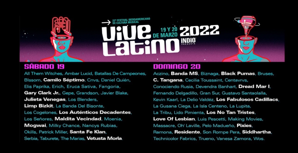 El Festival Iberoamericano de Cultura Musical, Vive Latino es el festival más importante de habla hispana y nació como respuesta mexicana a los grandes festivales americanos. Se realiza en la Ciudad de México desde 1998 (excepto 1999 y 2002), y este año la cita es el 16 y 17 de marzo. El festival centra su atención en la participación de músicos latinoamericanos; sin embargo, paulatinamente se ha ido incorporando la participación de grupos y solistas invitados provenientes de otras regiones del mundo y en otros idiomas.