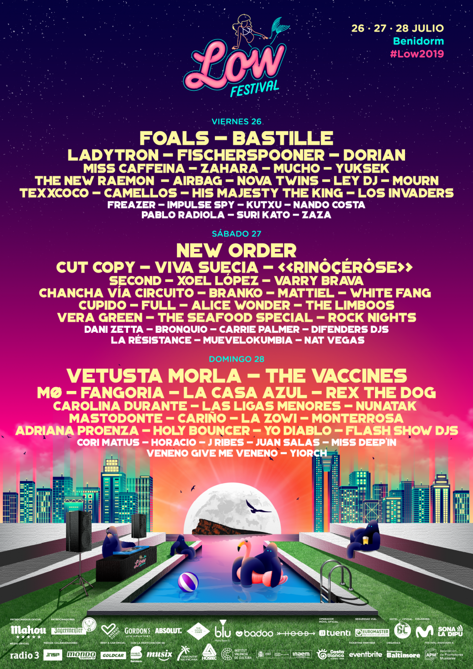 Low Festival se ha convertido en uno de los festival de verano más cómodo y completo del panorama nacional, con más de 70 artistas del rock, el pop y la electrónica, un recinto comodísimo (cuatro escenarios a máximo cinco minutos andando, césped, limpieza máxima y cero aglomeraciones), una ciudad icónica y, sobre todo, un ambiente increíble, con todo el buen rollo que desprenden los lowers.