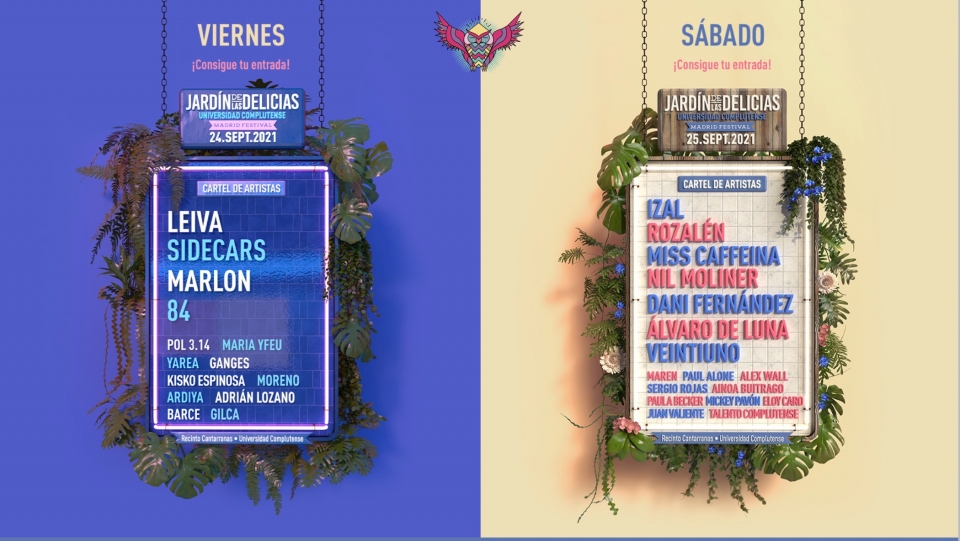 Jardín de las Delicias Festival se sitúa en el recinto deportivo Cantarranas, ubicado en la Universidad Complutense de Madrid y será una cita ineludible para dar la bienvenida al nuevo curso por todo lo alto; una oportunidad para reencontrarse y para disfrutar al aire libre de los últimos atisbos del verano madrileño, desde las primeras horas de la tarde, con la mejor música e innumerables sorpresas que irán ocurriendo desde que se abran las puertas de este misterioso jardín.
